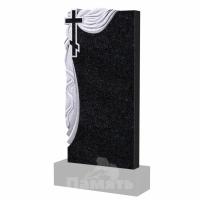 Эта модель памятника сочетает простоту и изящество. Чёткий прямоугольный силуэт стелы дополнен декоративной резной драпировкой, расположенной с левой стороны. По краю плиты спускается белоснежная плащаница крупными, плавными волнами, почти достигая основания, изящно обрамляя православный крест, высеченный в левом верхнем углу. Такое оформление придаёт памятнику ощущение умиротворённости и лёгкой таинственности, одновременно подчёркивая религиозную направленность изделия. Надгробие станет достойным и выразительным знаком памяти, гармонично обозначая место упокоения верующего человека и создавая атмосферу уважения и почтения к его жизни и вере.