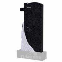 Надгробие привлекает внимание своей выразительной формой и ясно демонстрирует религиозную принадлежность усопшего. Центральным элементом служит крест, аккуратно вырезанный с левой стороны стелы, гармонирующий по размеру с пропорциями всего памятника. На одной из его перекладин расположено белое полотно, ниспадающее мягкими волнообразными линиями к основанию, создавая ощущение движения и лёгкости. Такое оформление придаёт надгробию эстетичность и живописность, делая его одновременно торжественным и гармоничным. Памятник органично впишется в любой стиль захоронения, превращаясь в необычное декоративное дополнение и достойную память о родном и любимом человеке, ушедшем из жизни.